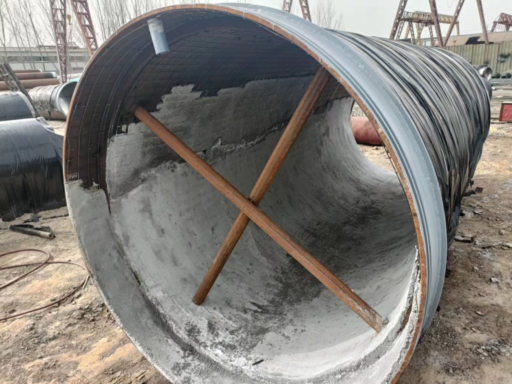 13283262888內外水泥砂漿防腐鋼管廠家介紹內外水泥砂漿防腐鋼管廠家為了保證外界空氣于內部介質水體不與金屬管道接觸,管道內壁由水泥砂漿作為防腐層與鋼管緊密相連,防止了腐蝕穿孔,延長了管道使用壽命。同時外壁也做成水泥砂漿,減輕了外界對鋼管的腐蝕,同時由于中間是鋼管更增加了其使用壽命。這種鋼管的使用壽命會比普通的水泥鋼管或者內襯水泥鋼管增加3-5倍的使用壽命。水泥砂漿防腐鋼管廠家生產方式主要有兩種,一種是離心法,另一種是人工掛網涂覆法。離心法主要適同于DN1200口徑以下的管道內襯施工,超過DN1200口徑以上需要使用人工掛網涂覆的方式進行作業。