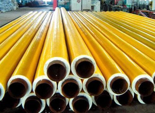 黃夾克保溫管原材主要包括有縫鋼管和無縫鋼管。黃夾克聚氨酯保溫鋼管常用的保溫材料是硬質聚氨脂泡沫塑料,適用溫度為-185~120℃。這種材料質地松軟,為提高其強度,在隔熱層外面加敷一層高密度聚乙烯層,形成復合材料結構,以防止地下水滲入保溫層內。黃夾克保溫管結構主要包括工作鋼管層,聚氨酯保溫層和高密度聚乙烯保護層。其中最外面的一層由預制成一定壁厚的黑色或黃色聚乙烯塑料材料覆蓋。黑色的稱之為黑夾克保溫管,黃色的稱之為黃夾克保溫管。其作用一是保護聚氨酯保溫層免遭機械硬物破壞,二是防腐、防水。高密度聚乙烯聚氨酯發泡保溫鋼管執行:SY/T114-2000和SY/T115-2001標準。