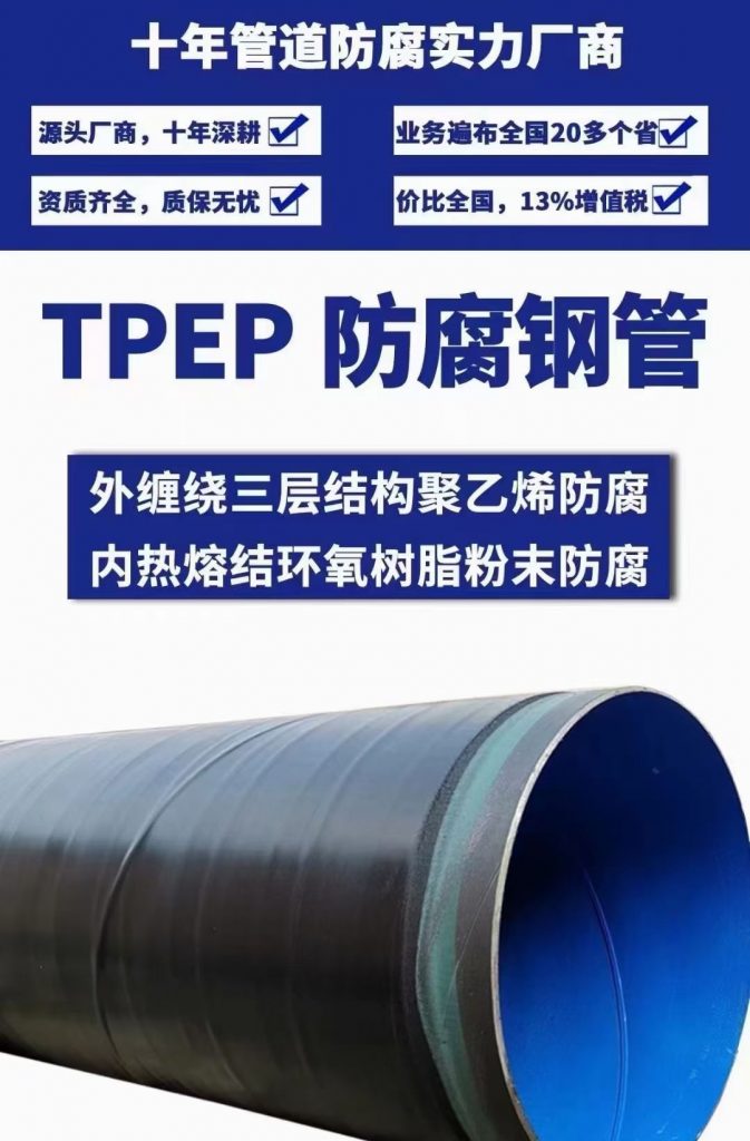 TPEP防腐鋼管,又稱涂塑管、鋼復合管、涂塑復合鋼管,以鋼管為基體,通過噴霧、滾動、浸泡、吸引技術在鋼管(底管)內(nèi)表面熔融塑料防腐層或內(nèi)外表面熔融塑料防腐層...